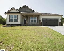 Beautiful home that is only 2 years old, 5 inch distressed hardwood floors from front door and foyer through family room, kitchen and dining area. Granite countertops in kitchen and master bath. Mosaic glass backsplash in kitchen. Walk in pantry fits all your needs for the kitchen. Raised stone hearth and stone wall to stained mantel on the gas fireplace in the family room with cathedral ceilings and a wall of triple windows that over look the huge covered patio. Dining area has crown molding and chair rail with picture molding trim. Tray ceiling in master bedroom and huge walk in closet large enough for a dresser. Custom paint colors in all bedrooms. Master bath has upgraded fixtures and mirrors. Sprinkler system in front yard and mulch beds makes live easy so that you can enjoy your huge private back yard with a mountain view and tree line at back of property.