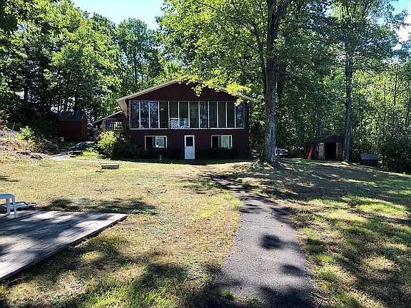 The house and land you have been waiting for on Lake Shirley! Desirable, level lot with 300 feet of lake frontage in quiet cove. Opportunities abound for the new owner to create their dream lake house! House includes newer roof, heating system, 200 amp electrical panel, shallow well with two filters, hardwoods throughout main floor, recent exterior paint job, two working fireplaces, and a sandy beach. Main level is complete with two bedrooms with large closets, oversized kitchen/living spaces and three season porch with lake views. Lower level is waiting for new owner to make it their own! Currently it is a large open space with bathroom, second kitchen and custom built bar that walks out to the lake. House is complete with four outbuildings (including garage) to store all your toys! Beach and dock area is accessible by vehicle for easy boat launches. Property to be sold as is, buyers to perform own due diligence. Offers due by Tuesday, September 15th at 2:00pm.