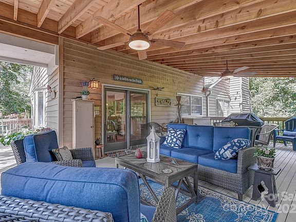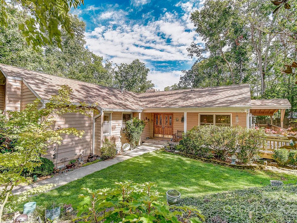 Charming 3BR/2BA in The Forest off Beaverdam Rd. Main level features cathedral ceilings and an open living/dining/kitchen/breakfast layout centered by a stone fireplace. A finished basement (just under 7' ceilings) adds versatility with laundry, half bath, utility room, office, and bonus/library—ideal for work, hobbies, or retreat. Recent upgrades include a new roof and newer HVAC. Enjoy outdoor living on the expansive cedar-covered wrap deck, plus a covered front porch, perennial gardens, mature trees, fire pit, and privacy fencing for a serene, low-maintenance setting. Minutes to Beaver Lake, Country Club of Asheville, Grove Park Inn, UNCA, and Downtown Asheville—a blend of mountain charm, space, and convenience.