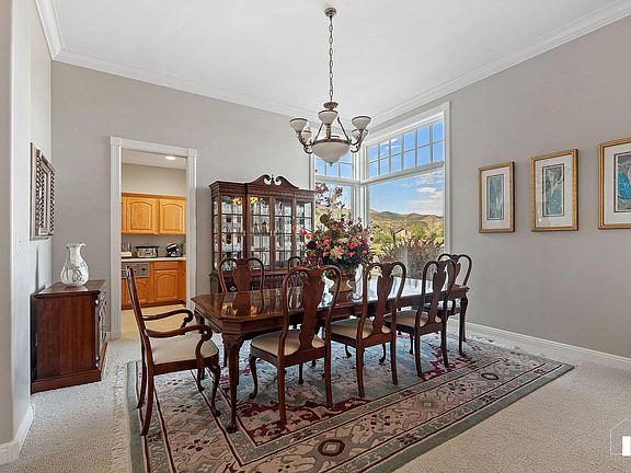 Beautiful custom built home with upgrades throughout. Pella windows, custom doors and central vacuum. Chef grade kitchen features 4 ovens, breakfast nook and plenty of room for entertaining. Large dining area with butlers pantry. Two master bedrooms on main floor as well as a laundry room. Lower level of home has 12 ft. ceilings a full kitchen, living room area with fireplace, 2 bedrooms with jack and jill bathroom, exercise room, large hobby/craft room, laundry room and tons of storage space. Three covered patios in the back yard as well as an outdoor kitchen. 3 car detached garage is roughed plumbed for a bathroom and kitchen area. Home sits on .85 acres with access off of two different roads. Pressurized irrigation water is included. Agent is related to seller.