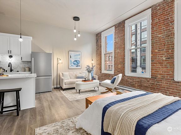 Immerse yourself in the vibrant pulse of Pioneer Square! This stylishly renovated studio in the historic Our Home Condos is your gateway to exciting nightlife, thrilling sporting events, world-class restaurants, convenient commuting & all the city has to offer. Enjoy a brand new modern kitchen with S/S appliances, a fully updated spa-like bath & the convenience of in-unit laundry. This inviting retreat w/ soaring 11' ceilings features all new finishes throughout; new lighting, beautiful new vinyl plank floors, designer paint & all new interior doors/handles. A quick ride on the C line takes you thru Dtwn and SLU. Experience the best of urban living in this convenient urban oasis. Don't miss the shared rooftop view deck! No rental cap!