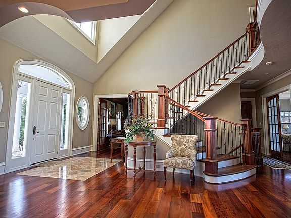 INCREDIBLE HOME, INCREDIBLE LOT WITH INCREDIBLE VIEWS!This former Home Tour showplace located in Park Place is ideal for large families and especially entertaining. The vaulted 20 ft ceilings, 15 ft windows and 423 feet of waterfront provide a glorious view of sunrise and sunsets. The open beam gourmet kitchen has granite & marble counters and Thermador and Sub-Zero appliances. All cabinets are custom made throughout the house. The entry level has radiant heated Brazilian Cherry floors and the lower level radiant heated tile provides constant warmth and comfort. A two-story custom screened sunroom off the kitchen provides another eating area for those balmy summer nights and the spiral staircase takes you to a tranquil sitting area with lake breezes and more breath-taking views
