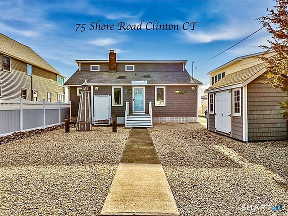 Welcome to wonderful! This beautifully renovated single-level home is offered in meticulous condition, showcasing thoughtful upgrades throughout and unobstructed water views of Long Island Sound. Located in the desirable Clinton Beach community, the property features a private beach with 45 feet of sandy frontage and a spacious deck overlooking the shoreline, with soft sand just steps from your door. Fully remodeled inside and out, the home offers a bright, open living area with a wood-burning fireplace and double sliders that capture stunning coastal views. The main-level primary bedroom also features sliders leading directly to the deck, allowing you to enjoy year-round seaside scenery. With three bedrooms and 1.5 updated baths, this move-in-ready home blends modern comfort with timeless coastal charm. Major updates include a new roof, windows, doors, flooring, insulation, sheetrock, wiring, Cedar Impressions vinyl siding, kitchen, bathrooms, and appliances. Additional improvements include Mitsubishi heating and air conditioning systems, ceiling fans in the living room and all bedrooms, an alarm system, outdoor shower, and storage shed. The home is offered fully furnished for immediate enjoyment. A mooring for up to a 30' boat or swim dock conveys with the property. Whether enjoyed seasonally or year-round, this exceptional waterfront ranch offers carefree coastal living at its finest. Don't miss this rare opportunity to own a beautifully updated waterfront home.
