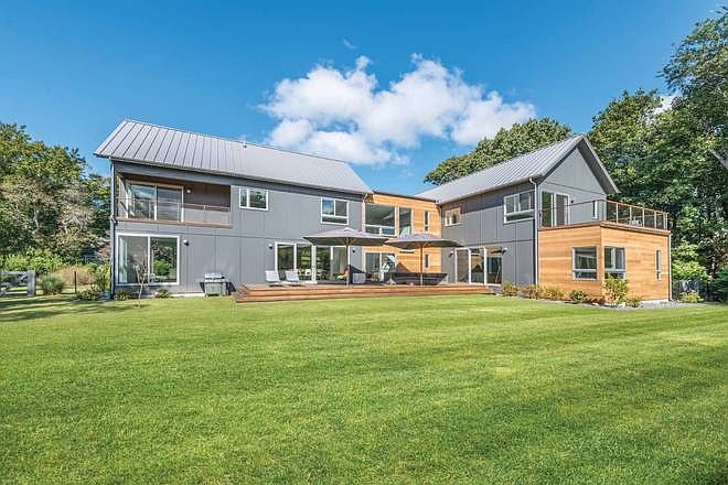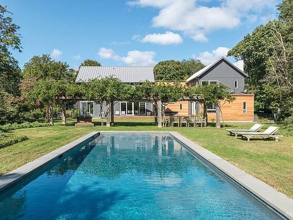 Clean lines, an open floor plan, multiple living spaces and an emphasis on green building make this North Haven home distinctive from all others on the market. The park-like grounds with mature plantings, proximity to Sag Harbor Village and the bay beach make it especially alluring. With more than 7,500+/- sq. ft. on three levels, this sleek residence marries a European sensibility with Hamptons indoor-outdoor living on over an acre of property, mindfully incorporating the modern conveniences of today's custom-built luxury home with practical energy-conscious elements in an effortless style. The residence offers five en-suite bedrooms, including a main level guest suite and two masters upstairs, each with its own deck overlooking the expansive lawn, wisteria-covered pergola and heated gunite pool. The second floor has two additional bedrooms and a home office. The fully finished lower level with 9-foot ceilings offers an incredible amount of recreational space, perfect for a home theater, gym, and separate play/game room as well as additional full bathroom, bonus room and storage galore. The focal point of the home is the open concept living/dining, with wide glass sliders which incorporate the private backyard into the home. The modern eat-in kitchen with its gracious center island, with comfortable seating for four, offers top-of-the-line appliances as well as an induction system. Forward thinking features include Dekton countertops, the latest in recycled material that won't stain or burn, TeddWood custom cabinetry, and a glass convection stove top - the newest and most energy-efficient cooktop that boils water in seconds - as well as other high-end appliances from Thermador, Miele and Bosch. With Sag harbor Village less than a mile away, the residents-only village tennis courts close by and the bay beach at the end of the street, this thoughtfully built home situated in a quiet residential neighborhood gives new meaning to modern living in the Hamptons.
