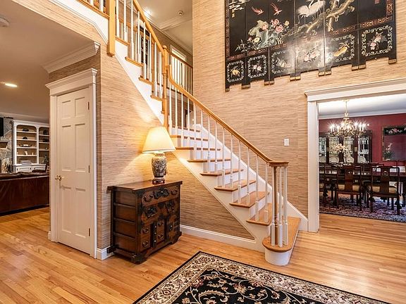 This beautiful 4+ bedroom home has it all. Wonderful flexible floor plan. Gourmet kitchen with stainless and granite, Miele double ovens, micro & warming drawer, 6 burner range, dacor stainless hood, large island with breakfast bar, lower seating for 4, veg sink, Thermador fridge. Large family dining area with double French doors and access to back yard, Beautiful LR with bay window, gas fireplace, with marble surround, butlers panrty with double wine coolers, granite, sink, custom cabinetry. Banquet size DR with wainscoting, bay window, FR with stone hearth, built-ins, sun room or second office with gas fireplace, access to deck, exterior gas fireplace with sitting area. Master with dual closets, sitting area, French door to exterior balcony, zen master bath with brazilian cherry, separate vanities, oversized shower, jetted tub. 4 other nice sized bed, 2nd fl laundry. Great finished walk out lower level. .Fabulous park like grounds with ponds, all fenced. Extra garage/storage shed.
