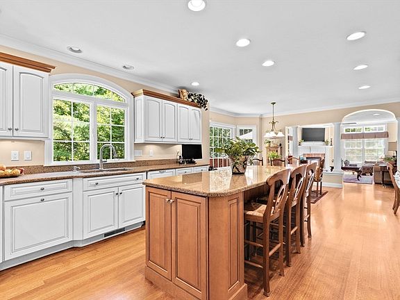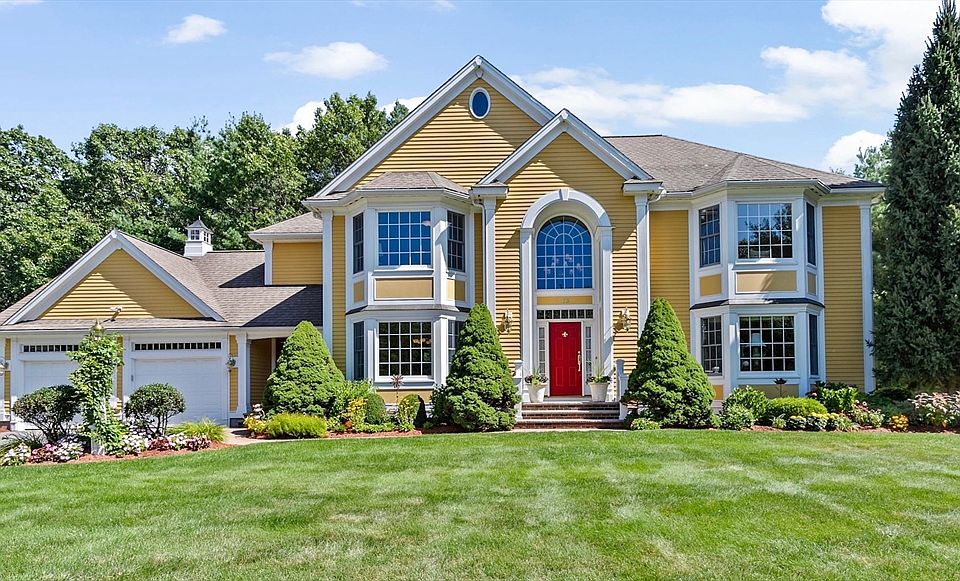 Step into this beautifully maintained four-bedroom, three-bath home in the heart of North Andover. The grand foyer showcases a sweeping curved staircase, Brazilian oak quarter-rift floors with Peruvian walnut accents, oak vents and detailed millwork. The home offers two living areas with fireplaces, a dining room, a chef’s kitchen with custom cabinetry, warming drawer, granite countertops, large center island and abundant light. Features include Hunter Douglas blinds, wainscoting, tray ceilings, solid brass hardware, and crown moulding throughout. Upstairs are four bedrooms and two full baths, including a primary suite with walk-in closet, dual vanities and soaking tub. Closets and pantries have custom built-ins. The walkout basement with full windows provides 1,600+ sqft of potential living space. A mahogany deck overlooks landscaped grounds and a wooded backdrop. Additional highlights include a two-car garage, patio, and prime location near schools, parks, shopping and commuter route