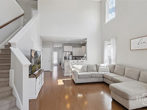 This beautiful 4 bedroom, 2.5 bath home is exactly what you have been looking for. Soaring ceilings and floor to ceiling windows flood natural light into this home that grab you as soon as you open the door. Walking further into the home, the large living room continues into a spacious kitchen with pantry and a room presently used as a dining room. The primary bedroom has a walk-in closet and an en-suite bath with a large walk-in shower and double vanity. A guest powder room and laundry room complete the downstairs. Three more very large bedrooms and a full bath are upstairs. The front upstairs bedroom opens onto a full balcony. The attached single car garage has a kitchen level entrance into the house. With a brand-new roof, a new dishwasher, and no flood insurance required, this home is move in ready. The refrigerator, washer and dryer remain with the house. The front and side lawn is maintained by the HOA so you only need to worry about the back, you are almost maintenance free.