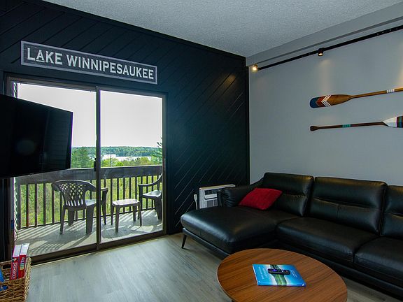 Relax at the lake! This smartly updated & fully furnished 3bed, 2bath condo offers lake views from your private balcony, living room, and primary suite. Perfect year-round getaway, vacation retreat, or income producing property, this home is move-in ready and short-term rental friendly. Inside you'll find an open concept living area with sliders leading to the private balcony, ideal for your morning coffee or evening drink. The modern kitchen features S.S. appliances and blends seamlessly into the dining and living space. Updated throughout include luxury vinyl plank flooring, gel-filled electric baseboard heat with Wi-Fi thermostats, and new wall A/C units with Wi-Fi controls. With three bedrooms, this home comfortably sleeps up to 8 people, making it a fantastic rental or gathering spot for family & friends. The primary bedroom offers its own full bath and generous closet space, while guest will appreciate the 2nd full bath. Enjoy the association's resort style amenities, including a sparkling outdoor saltwater pool with lounge chairs, shaded tables, and BBQ grills, plus tennis/Pickleball court, kids playground and Coin op-laundry. Convenient on-site parking is available for boats, snowmobile trailers while your there. Pet friendly for owners (up to 2 dogs). Centrally located and minutes away from Weirs Beach, Gunstock Ski Resort, Bank of NH Pavilion, plenty of restaurants, shopping, hiking and more. Just bring your suitcase, because you're ready to start enjoying.