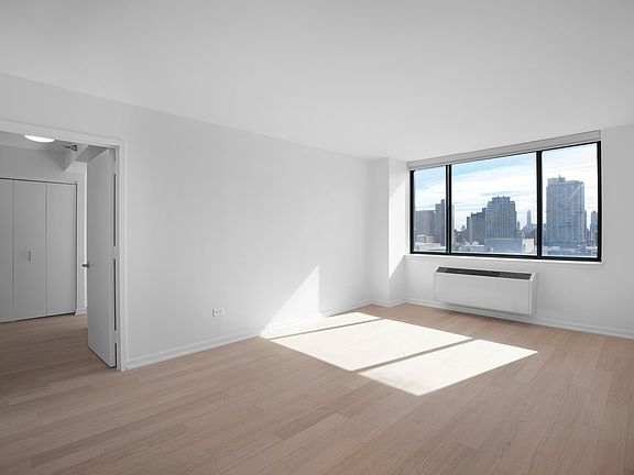 $1,000 Reduced Security Deposit for Qualified Applicants East facing, light filled two bedroom / two bathroom with washer/dryer and Manhattan skyline views.