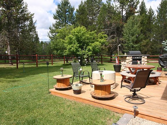 Cute home in park like setting, located on a quiet street just south of Cascade this home features 3 bedrooms, 2 baths, all on one level with a two car garage. The yard is amazing with extensive sprinkler system, two storage sheds and partial fenced area for pets. The living room opens to a spacious kitchen, dining and family area that opens to the large deck to the yard. Plenty of room to add a shop, store trailers and room for all the toys. One shed is made for snowmobiles to drive in, store and drive out. Rock fire-pit finishes off the outside features of this have to see home and picture perfect property