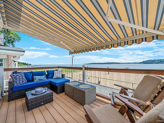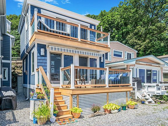 Beachfront spectacular! This 2 bedroom, 2 bathroom custom built (2008) Port Washington home is located in a private beach co-op community perfectly situated on Long Island's Gold Coast on Hempstead Harbor! A rare and unique coastal gem, this exclusive waterfront home, with private beach access right outside your front door, is a tranquil, nature lover's paradise. There are jaw-dropping unobstructed panoramic beach and water views from almost every room in the house. Eastern-facing exposure gives picture-perfect sunrises. The main floor living space boasts an open concept, bright and airy kitchen with great storage, custom-designed coastal cabinetry, custom lighting and luxury Jenn-Air appliances. The nicely sized living room has a wall of glass sliders which open up onto your beach front deck. The home has floor to ceiling Anderson impact-resistant glass doors and windows on both levels. The private primary suite features vaulted ceilings, and a spacious second level balcony accented with custom designed glass spindles allowing for vast upper level views. The primary en-suite bedroom also features a large dual-sided closet, a remote-controlled gas fireplace, and a washer/dryer. The primary full bathroom has a stone spa shower with built-in seating and a custom window providing a water view from within the shower. The sunlit bathroom is enhanced with a separate, oversized soaking tub. The first floor has a second bedroom, and a full bathroom with a stall shower. Additional features of this home include a hard-wired security system, a new roof placed in 2021, covered gutters, and an outdoor gas grill. The raised first floor elevation allows for plenty of under deck and under home storage, and break away storm walls.