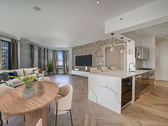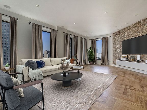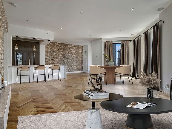 This residence has been newly updated with luxurious herringbone wood floors with a stunning light finish. Zoned Central Air, in-unit laundry, gorgeous exposed brick, surround-sound system and 10-foot ceilings make this unique residence a true showstopper.