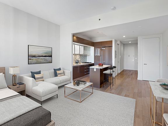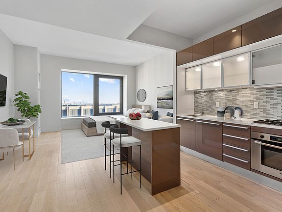 Platinum Properties is proud to present residence 33Q, a studio gem with Brooklyn skyline and East River views. This residence features high ceilings, oversized windows, in-unit washer/dryer, abundant closet space and a kitchen designed for entertaining. This apartment boasts a range of enticing features that cater to modern living. Inside, you'll find the convenience of a Washer and Dryer In-Unit, complemented by the elegance of Caesarstone Countertops in the Kitchen and Boffi Lacquered Kitchen Cabinets. The culinary space is equipped with top-of-the-line appliances from renowned brands including Sub-Zero, Liebherr, Bosch, Miele, Electrolux, and Sharp to create a chef's dream kitchen. Adding a touch of luxury, the bathroom is adorned with Botticino Marble Flooring and deep soaking tubs, while the living areas are enhanced by the charm of Wide-Plank Cerused Oak Flooring. Moreover, the building presents a host of amenities designed to elevate your lifestyle. A 24-Hour Doorman ensures security and assistance round the clock. Fitness enthusiasts will appreciate the 24-Hour Gym, complete with Peloton Bikes. For relaxation and socializing, the 360-Degree Terrace beckons with a comfortable lounge atmosphere. Additionally, a Club Lounge featuring Billiards offers a space to unwind and socialize. Families with children will find a dedicated Children's Playroom, and the building is also welcoming to pets, making it truly inclusive and accommodating. Welcome to the vibrant Financial District, located at the southern tip of Manhattan. This neighborhood seamlessly blends historic charm with modern energy, offering a diverse array of shopping, dining, and recreational experiences. From luxury boutiques to trendy dining establishments, the district caters to every taste and style. As the sun sets, the neighborhood transforms into a lively social hub, where locals and professionals alike gather to savor exquisite cuisine and explore the rich tapestry of entertainment options. Whether you're engaging along the picturesque waterfront or indulging in world-class shopping, the Financial District promises an exciting urban atmosphere that captures the essence of New York City's dynamic lifestyle. Application Fee: - $20 Credit Check fee Condo Board Fees: - $500 Move-in Fee - $1,000 Move-in Deposit (refundable) Due at Lease Signing: - 1st Month's Rent - Security Deposit (equal to 1 month of rent) Other Miscellaneous Fees: - $50 Late Rent Fee - $50 Non-sufficient Funds Fee