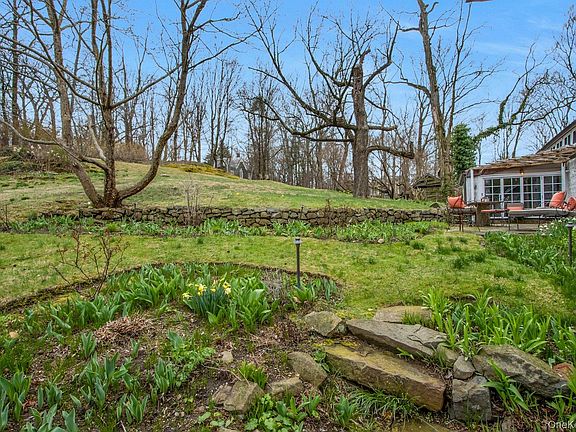 Federal style fireplace mantelThird working fireplaceStone patio and gardenMagnificent and private landscapeCliffs of the palisadesPrivate screened in porchBack staircase