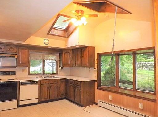 Property is listed below assessed value and is suitable for a cash buyer or rehab loan. This ranch home has curb appeal and a lot of potential. It has a great foot print with a large family room with stone fireplace and hardwoods. Some hardwoods under rugs. Large eat-in kitchen with skylights, bay window and woodstove hook up. Full bath with tub and shower enclosure and additional first floor laundry room with closet. Windows have been replaced at some point. Large two car attached garage with storage. Two sheds. Sprinkler system. Potential for 3 bedrooms. This home has a working cess pool with leach field currently for a two bedroom home. No title 5 (buyers responsibility). Being sold "AS IS". Home inspection for informational purposes only. This home is located on a beautiful country road and has a lovely half acre lot with extensive mature gardens and flowering fruit trees. Nearby to Westboro, Tufts, MA Pike and Commuter train.