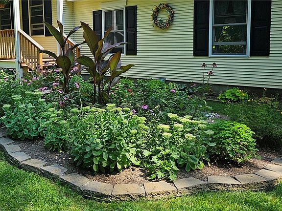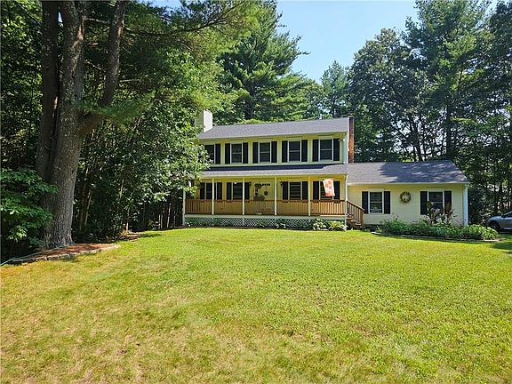 Welcome home to this well maintained 3 bedroom, 2.5 bath center stairwell Colonial with an attached 2 car garage, all situated on 5 acres. The long driveway offers ample parking and takes you to a beautifully landscaped yard with many perennial gardens; spacious area with a firepit and a shed surrounded by serene woods for privacy. This home offers new roofs on the home, garage and shed, it offers new windows and new insulation in the attic. This entire home has been freshly painted. The first floor offers a spacious open concept kitchen with dining area. The dining room is spacious with hardwood floors. The living room offers a pellet stove for additional heat source with hardwood floors. The perfect layout for entertaining/holidays. The first floor also offers a half bath for your guests along with a laundry room. The Second floor offers a Master bedroom with a Master bath, a walk in closet and additional closet space. There is also an alcove in the room for a desk. There are 2 other bedrooms on the second floor with large closets and an additional full bath. The unfinished basement offers 884 square feet for those who would like to create additional entertainment space. There is a bulkhead for access to the back yard. Home offers 200 amp service. Don't miss out on the pride of ownership in this home.