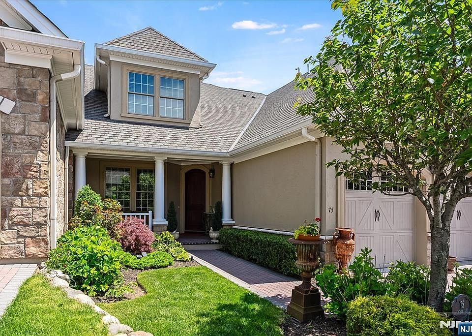 Timeless Elegance in Bear's Cove - PRIME LOCATION, PREMIER LIFESTYLE Experience the ultimate in refined living at this exceptional Carlyle model townhome in Bear's Cove, Bergen County's premier 55+ gated community. Ideally situated in one of the most desirable locations within the complex, this home offers a rare blend of luxury, comfort, and privacy. Enjoy the charming front porch before stepping into a welcoming two-story foyer leading to a light-filled great room with soaring ceilings and a gas fireplace. The formal dining room with tray ceilings flows into a chef's kitchen featuring Viking and Bosch appliances, granite countertops, and a sunny eat-in area with custom built-ins that opens to a private deck overlooking lush green space--perfect for relaxing or entertaining. The expansive first-floor primary suite features a spa-like bath and double custom walk-in closets. A powder room, laundry area, and attached two-car garage complete the main level. Upstairs offers a spacious loft, two generously sized bedrooms, a home office and hall bath. The finished lower level includes a large family room with high ceilings, a bonus room, full bath, stunning walk-in closet, water softener, and abundant storage. Upgraded with elegant crown molding, custom millwork, and recessed lighting. Resort-style amenities just steps away: clubhouse, gym, sauna, steam room, heated pool, putting green, bocce, card & billiards rooms. Call Eileen Seaman 201-906-8626 to see this beautiful hom