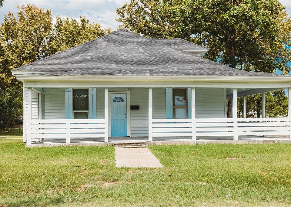 Completely remodeled home on large corner lot. Open floor plan. Two bedrooms downstairs and one bedroom upstairs. Upstairs could also be used for craft room, office or game room. Large wrap around porch, shade trees two sheds and a storm cellar.