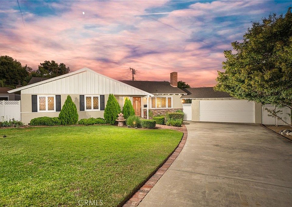 Tucked away at the end of a peaceful cul-de-sac in a desirable North Glendora neighborhood, this beautifully updated home offers comfort, charm, and convenience. With 3 bedrooms, 2 bathrooms, and 1,507 sq ft of living space on a generous 12,351 sq ft lot, this property is perfect for those seeking both privacy and a functional layout. Step onto the inviting brick front porch and into a warm living room featuring beveled front windows with plantation shutters, a cozy fireplace, and custom built-in bookshelves and cabinets. The heart of the home is the open-concept kitchen, boasting white cabinetry, a center island, granite countertops, stylish glass backsplash, and stainless steel appliances including a built-in refrigerator, gas cooktop, double ovens, and a spacious walk-in pantry. Adjacent to the kitchen, the light-filled family room includes a second fireplace, a large closet, and French doors that open to the backyard oasis. All three bedrooms are generously sized and offer new carpet and mirrored closet doors. Two well-appointed hallway bathrooms include a shower/tub combo in one and a standalone shower in the other. Thoughtful upgrades throughout the home include fresh interior paint, new luxury vinyl flooring, new carpet in the bedrooms, new baseboards, recessed lighting, PEX plumbing, new waste line, Milgard dual-pane windows, and an updated electrical panel. Enjoy California living in the expansive backyard featuring an in-ground pool and spa, large pool deck, spacious lawn area, and mature fruit trees, ideal for relaxing or entertaining. The two-car garage with breezeway includes laundry facilities and extra storage. Located in the highly rated Glendora Unified School District, this home is within walking distance to Cullen Elementary, Goddard Middle School, and the charming downtown Glendora Village with its array of shops, restaurants, and cafes.