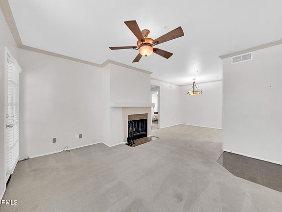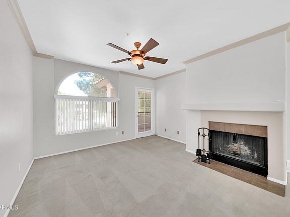 Welcome to this beautifully maintained condo in one of Phoenix's most desirable locations, the perfect place to live, invest, and make your own. The kitchen features granite-look laminate countertops that extend to the backsplash, offering both style and easy care. In the great room, enjoy a cozy natural wood-burning fireplace, crown molding, and balcony access overlooking the community pool and courtyard.