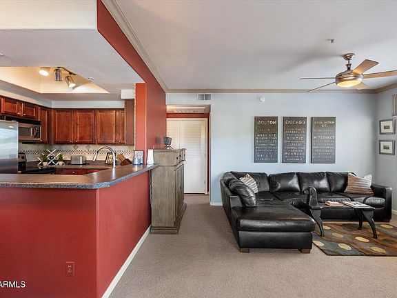 Welcome to Las Brisas, a charming, gated enclave quietly nestled in the heart of uptown, the best kept secret in the North central valley! And this is the best value in the complex by a mile, nothing else comes close! The best location, tucked all the way in the back, featuring a gas fireplace, open kitchen great room plan, stainless steel appliances with built-in microwave, breakfast bar seating, dining nook, stackable washer/dryer, large storage area and more. This desirable complex has it all-3 heated pools, tennis/pickleball courts, state of the art fitness center, club house and private exit onto the canal path, which affords access to countless restaurants and other amenities, easily accessible via walking or biking! A perfect combination of incredible value, features and location!