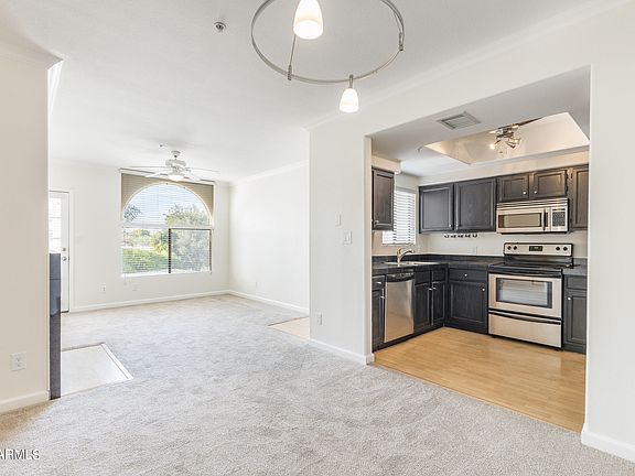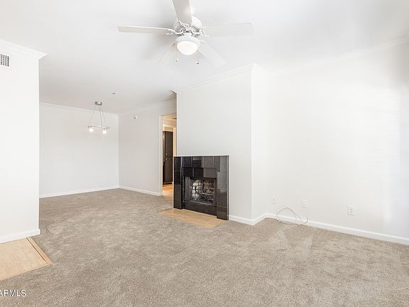 Fresh/bright condo in a popular popping community w/fantastic location. This second-floor doll house features brand new carpet & paint, reconditioned tub & shower & is CLEAN, CLEAN, CLEAN!! It offers high ceilings, huge windows, tons of light, a wood burning fireplace, crown molding, large walk-in closet, full size washer & dryer hookup, large storage room & large covered balcony. The community of Las Brisas is one of the best in the Valley w/ 3 pools, tennis courts, pickle ball, charcoal BBQ grills, club house, fitness center & DIRECT GATED ACCESS TO THE GRAND CANAL for biking, walking, hiking & great restaurants like Luci's Orchard, Sushi Friend, the brand new VIG ON-Central & more. Six-month minimum leases only. It's the ONLY one-bedroom condo in the community 4sale & hard to come by