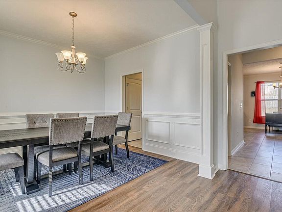 Adorable Grovetown home on a spacious, corner lot! This home features a formal dining room with charming wainscoting and crown molding. Cozy around the fireplace in the family rom that opens to an eat-in kitchen with center island and large pantry. Upstairs, all 4 bedrooms boast tall ceilings! The primary suite is complete with a sitting area, walk-in closet, double vanity, soaking tub, and separate shower. The laundry is also conveniently located on the upper level. Kids and pets can play in this huge, fenced yard while you grill or relax on a nice, covered patio! Neighborhood offers unique Ultra-Fast 1G Fiber Optic internet, resort- style pool, and sidewalks!
