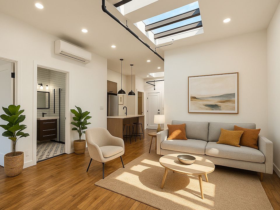 This beautifully designed loft-style home combines modern comfort with true industrial charm. Oversized windows and operable skylights flood the space with natural light, while 1218 ft ceilings, hardwood floors, and bold architectural details create a dramatic, open atmosphere.