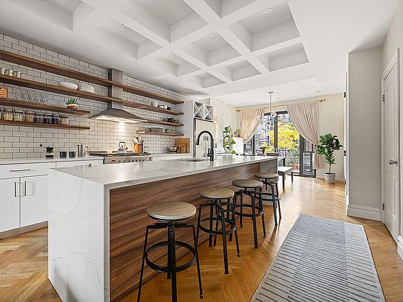 Modern upgrades run throughout the home, including central heating and cooling on every floor, a video intercom system, and built-in speakers for whole-home audio. Every closet was built out with the Elfa system to maximize storage.