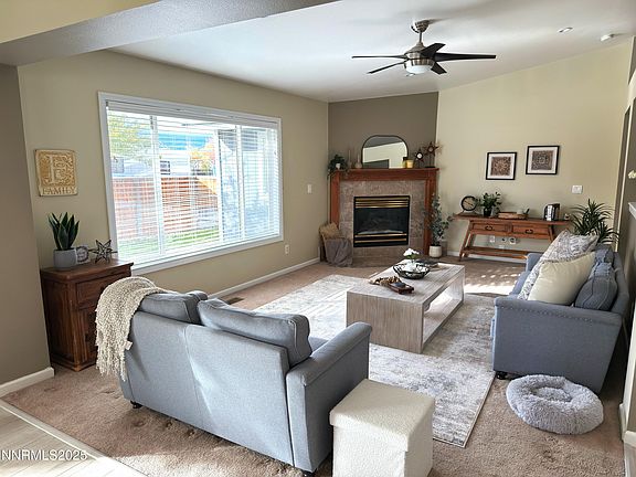 Great Gardnerville Ranchos home located on a .40 acre corner lot with tons of potential and room for expansion! As you step inside, you'll be greeted by a light-filled, open-concept living area with high ceilings that create an airy and inviting atmosphere. Large primary bedroom with a walk in closet in the attached primary bathroom. Outside, the vast backyard is perfect for outdoor gatherings, gardening, or simply enjoying the mountain views. New water heater and newer roof and swamp cooler. Plenty of room to expand and enjoy! Waiting for you to add your personal touches and make this your home for the holidays! Close to schools and just 5 minutes to town, less than 30 minutes to South Tahoe and 45 minutes to Reno.