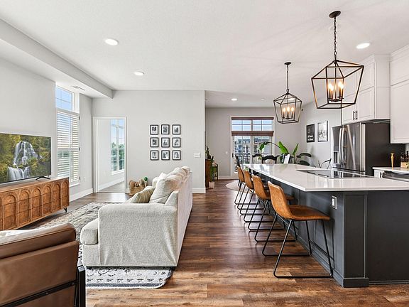 Welcome to the biggest and best unit available in Marketplace Loft, located right in the heart of downtown Hopkins. This is a stunning and rare top-floor, corner condo that boasts impressive 10.5-foot ceilings and is truly the largest unit in the entire building.