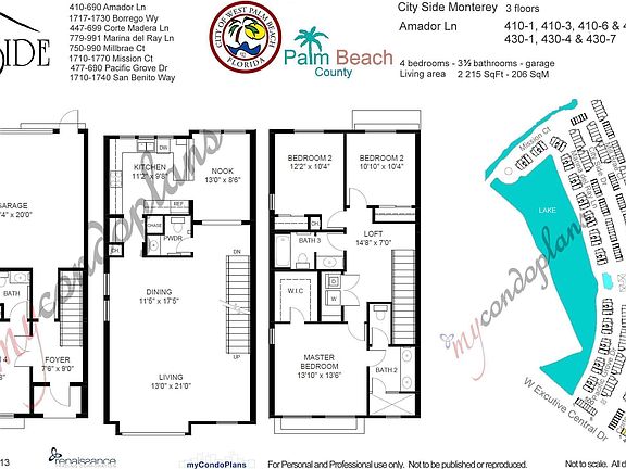 4BR/3.5 Bath, corner unit; 9 foot ceilings; Over $25,000 of upgrades; Deep cleaned and encapsulated A/C ductwork for healthier air quality, 2-Car Garage, 3 story townhouse. Condo fees include water, trash cable AND High speed internet, 7/24 security, exterior maintenance DARK FIBRE IN UNIT; Pets OK with approval. Amenities include lake front swimming-pool; 24 hour state of the art gym/fitness center, aerobics/dance room for fitness and yoga. Cityside has approximate 1.7 miles of running track, 24-hour man gated security and rover. Located only minutes from I-95, Downtown WPB, across street from the new Palm Beach Outlet Mall; Room lights may vary; Actual appliances are white' 2025 new porcelain flooring, LED lights fixtures, new steps, new coils & air handler;