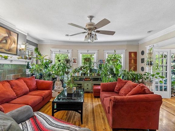 formal dining room with glass french doors. Bonus sun room. Spacious kitchen with stone counter tops and breakfast bar. Hard wood floors throughout. Lots of natural light. Laundry hook ups. Off street parking. Close to bus line. Minutes from downtown and the expressway. Huge unit that feels like a spacious home. Showings by appointment.