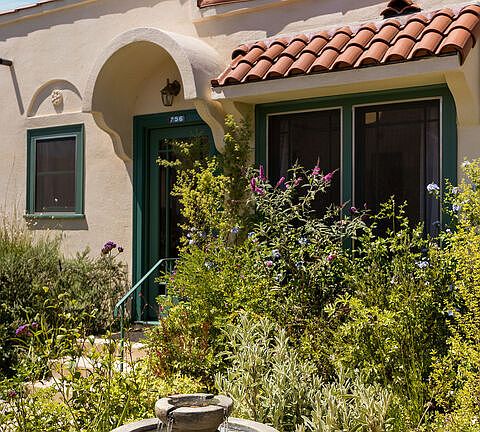 Claycraft tileSerene gated courtyardClassic clawfoot tubsOctagonal tile floorsWhite oak hardwood flooringBuilt-in wood-paneled dishwashersLathe-and-plaster walls