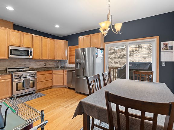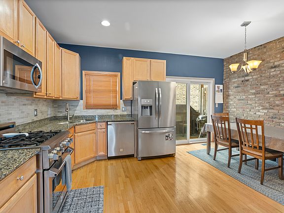 Laid back elegance meets modern comfort in this 3-bedroom 2.2 bath tranquil retreat nestled in trendy Noble Square. Introducing 4 levels of thoughtfully designed living space, a 2-car garage and an enviable rooftop deck, this home is the perfect balance of style and sophistication. Step inside to find a versatile street level bedroom perfect for guests, a private office or home gym, complete with its own half bath. Ascend the carpeted stairs into the heart of the home, a spacious open concept kitchen featuring granite countertops, stainless steel appliances, and capacious cabinetry. Enjoy seamless indoor-outdoor summer cookouts, with the dining room conveniently opening to your grill on the deck. The living room is inviting: warm hardwood floors stretch beneath your feet catching the soft glow of recessed lighting, setting the scene for cozy movie nights warmed by the fireplace. Head up the second-floor to find two generous suites each fitted with en suite bathrooms to end long workdays with a soak in the jetted tub. The sleek in unit washer and dryer was installed in June 2023 for convenience and utility. At the pinnacle of this charming residence lies a lofted level of endless possibilities: a cozy lounge, an artist's retreat or creative workspace. Step out onto your private rooftop deck and relish a romantic evening soaking up the ambient glow of the sunset and city lights from the serenity of your own home. Additional upgrades for effortless living include: water heater 2018, windows 2019, furnace and air conditioning 2020, doors and tuckpointing 2021, garage door 2022 and roof 2023. Foodies can delight in the neighborhood culinary scene, a combination of renowned restaurants and Michelin star restaurants like Jeong. Nearby, Eckhart park is perfect for exploring with your pup. Prime location allows easy access to Blue line or Kennedy expressway. Beyond the comforts of home, a new elevated lifestyle awaits.