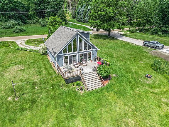 If you're looking to get away and unwind, this riverside chalet is the perfect spot! Situated on 105' of frontage on the river leading to 875 acres of private Lake Isabella. The primary bedroom and bathroom are on the main level along with an open concept kitchen and living space. Upstairs you will find two more bedrooms and a second bathroom. The lot is deep and makes the perfect spot for gatherings with plenty of space for yard games. The property includes a private dock, making it incredibly convenient for hopping on your boat, launching kayaks, or enjoying the peaceful river setting. Located along M20 between Big Rapids and Mt. Pleasant so you have access to essentials with just a short drive.