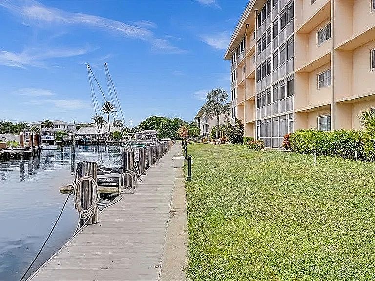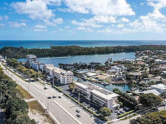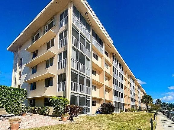 First time on the market in over 45 years. Boaters' paradise! Luminous corner unit with unobstructed Intracoastal views. 30' deeded dock and only a 10 minute walk to the beach! Publix, Wallgreens, shops and restaurants all within a 5 minute walk. Hurricane impact windows and hurricane impact motorized shutters on the patio. New A/C in unit and new roof on building. Occupancy May 1 2026.