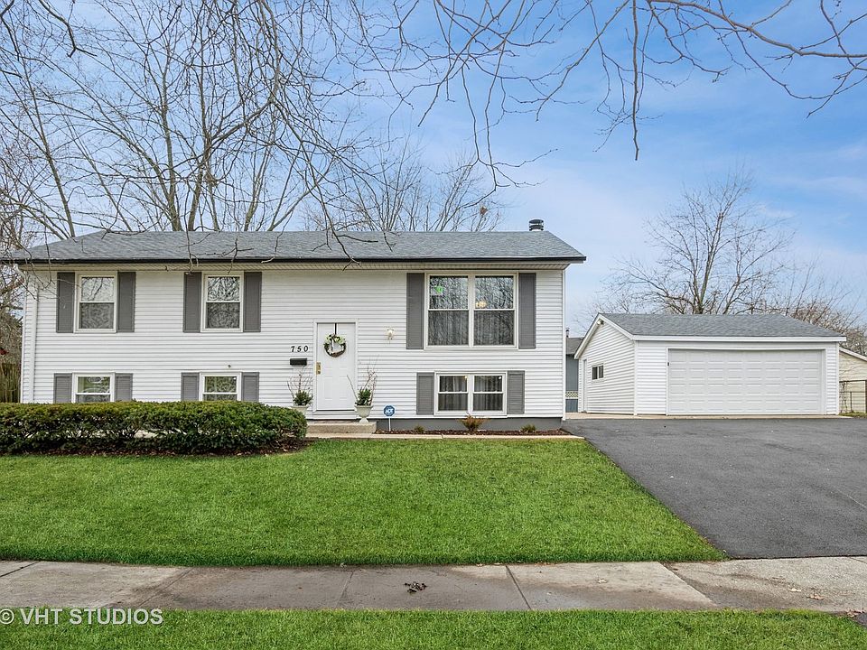 Gorgeous home in a superb location. Lots of room with 2 full levels of living space. The main level has 3 spacious bedrooms & a nice, updated bath with ceramic tile. The first level bedrooms have grey carpeting. Big 4th bedroom on the lower level. House was freshly painted! Nice lights. Modern laminate floors on both levels. Stunning kitchen with lots of great cabinets, stainless-steel appliances, undermount sink, tile backsplash & granite counter tops. Big kitchen opens to the dining area & has sliding doors to a large deck. Deck overlooks the fully fenced yard, has a bench & has storage under. Has 3 patio areas. Separate utility & laundry rooms. Nice big lower-level family room with a fireplace. House has a brand new roof. Oversized 2.5 car detached garage with a big side drive. Plus garage has its own breaker box & a gas line. Move in ready and a quick close is possible with immediate possession. Popular Glenridge / Cricket Hill area. Close to schools, parks, & highway access. Short walk to grammar school, the junior high school is nearby & 2 remodeled high schools to choose from!