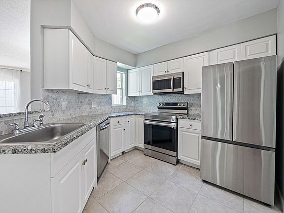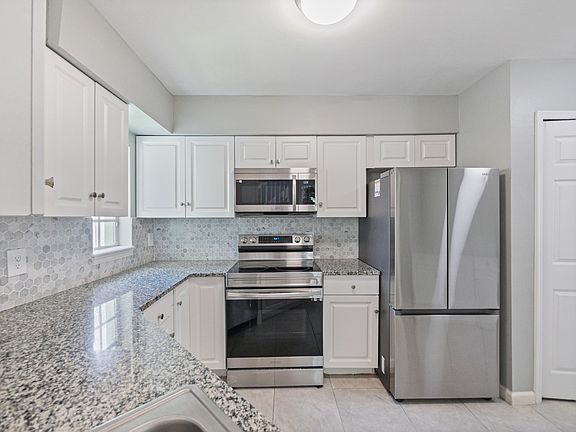 Step inside to a bright, open living area with upgraded flooring and modern finishes. The brand-new kitchen features stylish cabinetry, granite countertops, tile backsplash, and stainless steel appliances. The spacious primary suite is conveniently located on the first floor with a fully renovated bathroom, including a sleek tile shower and contemporary vanity. Upstairs you'll find two additional bedrooms and a full bath.