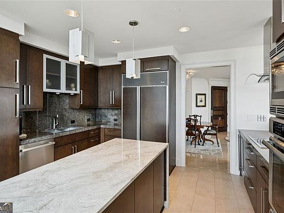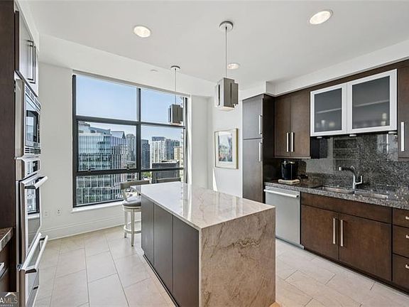 Elegant Buckhead Living at Park Avenue. Step off your private elevator into a luminous foyer, where lighting gently activates as you arrive-creating a warm and sophisticated welcome. Inside, the residence showcases gorgeous porcelain flooring, setting the stage for 2 bedrooms, 2 full bathrooms, a versatile den, and a powder room. The open living and dining areas are bathed in natural light, framed by walls of windows, and extend seamlessly to a wrap-around balcony with sweeping views of Buckhead's skyline. The gourmet kitchen is equally impressive, with high-end appliances, abundant counter space, and pantry, designed for both entertaining and everyday living. The primary suite is a true retreat, offering a spacious sitting area, spa-inspired bathroom, dual walk-in closets, and access to its own private balcony. A well-appointed secondary suite provides comfort for guests, while the den offers flexibility as a home office, media space, or library. Thoughtfully designed with both style and function, the home includes a convenient foyer storage closet, a discreet back service entrance, and a large laundry room with custom cabinetry and wash station. As a resident of Park Avenue, you'll enjoy world-class amenities: a heated saltwater pool, state-of-the-art fitness center, 24-hour security, lobby ambassadors, valet parking, and stylish guest suites. Perfectly positioned within walking distance of Buckhead's premier dining, shopping, and cultural attractions, this residence offers an unmatched lifestyle of sophistication and ease.