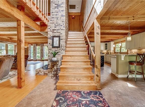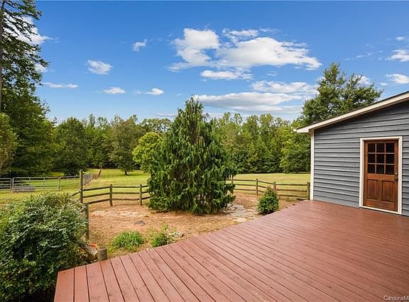 Charming Cabin in Clover! Live in privacy and comfort in this beautiful cabin located on a breathtaking twelve acres! From your private road entry, drive up to this unique, secluded cabin surrounded by open fields. The main floor features include an updated kitchen with granite countertop and modern appliances along with a living/dining area, fireplace, powder room, laundry room and a front and rear deck offering tranquil views of the property. The second floor has a primary and guest bedroom with full bathroom. Additional building features an office and a huge space with potential as a game room or home gym. Enjoy the peace and quiet of your own land while also being a quick drive to downtown Clover and the amenities of Lake Wylie. Don't miss out on this amazing opportunity! For best driving directions, input 820 Rhyne Road into your GPS