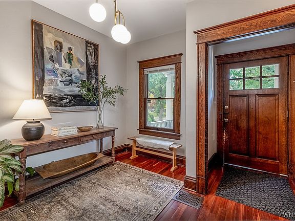 A welcoming porch and yellow front door lead to a grand foyer with classic oak staircase and original wood detail. A large pocket door opens to a bright and open double living room with decorative tile fireplace surround and carved lion head mantle. The spacious dining area flows seamlessly into a modern kitchen with granite counters, tall cabinets, and an extra large double pantry with glass doors. Dual staircases lead to a second floor landing where you’ll find three bedrooms and an updated bath. The primary bedroom spans the entire front of the house and includes a massive closet with built-in closet organizers. The third floor offers additional living with loads of options. Perfect for a guest suite, in-law setup, teen suite, or creative studio, this space offers a cozy living room, kitchenette, full bath and additional bedroom. Outside, enjoy off-street parking, and a private, fully fenced backyard. Don't miss the opportunity to enjoy this well updated Buffalo classic and be a part of our region's most vibrant community. Showings begin Thursday November 6th. Open house Saturday November 8th from 11-1. Offers considered starting Tuesday November 11th. Let's move.