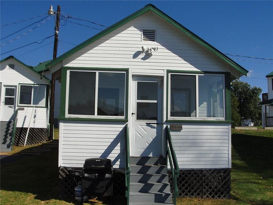 Original 1950's studio cottage with knotty pine walls and floor, screened in porch, full bath, kitchenette, propane heat, fully furnished. Assigned BOAT SLIP and shared beach, metal roof, wood siding freshly painted, shared well and septic, paved driveway/parking, seasonal. Walk to town to restaurants, stores or to town activities; rent or just use this little hideaway for yourself. 3 cabins available to purchase separately - units 3,5,8).