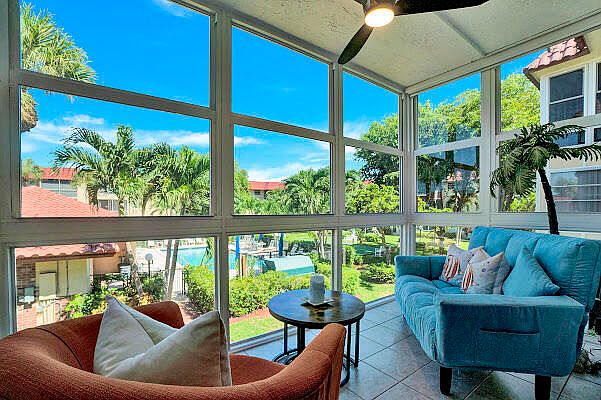 Stunning 2/2 renovated condo with an amazing impact glass enclosed Lanai located in a 55+ community with elevators. Enjoy your morning coffee or an evening glass of wine while taking in the tropical view. Meticulously maintained home with lots to offer. Kitchen has stainless steel appliances including an induction cooktop and oven with air fryer option. The wonderful amenities include pool, clubhouse with generator, billiards, putting green and shuffleboard. Building's roof was recently replace this year. Condo is located close to the beach, shopping and restaurants. Make this impressive condo your home!