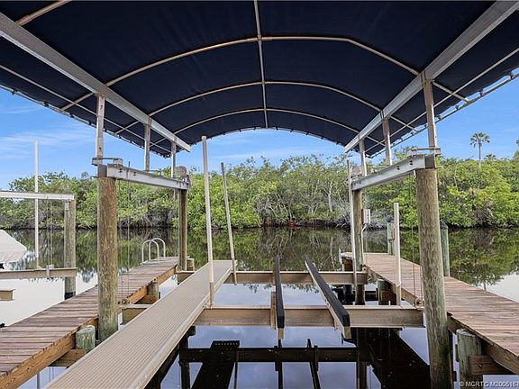 Explore this stunning smart home with top-tier features! Enjoy security with cameras covering the exterior and two interior spaces. Deep water/ocean access includes a large dock with eating area, sitting space, and a 16k-lb boat lift. New '22 impact windows boost safety. The 200-gallon reef tank is included w/ service.