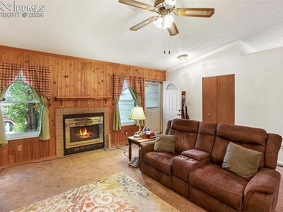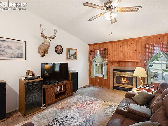 Great location to Fort Carson and Interstate 25. No stairs. Nice private patio in back with some growing area for plants, some artificial turf. Front yard has a nice pear tree. Access to patio from kitchen or master bedroom. Fireplace in living room. HOA maintains dog park in neighborhood. Refrigerator 3 years old. All windows and 2 sliders replaced in 2019. Kitchen and Bathrooms have new flooring in 2024.