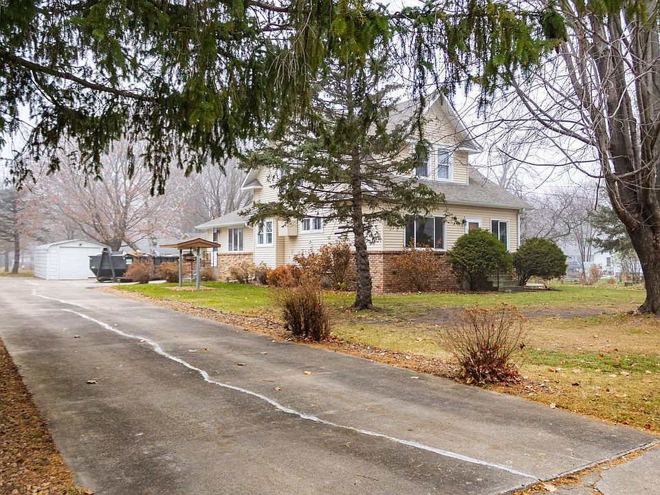 Here it is!! Your opportunity to own this 4 bedroom/3 bathroom 2268 sq ft home on a 1 acre lot in town. Lower level family room is finished except the flooring. Hardwood floors, very large living room, main floor primary bedroom with primary bathroom, main floor laundry room, attached garage and 2 other detached garages all on a very large wooded city lot. Newer roof, newer water heater 2021, lots of storage in the basement and so muchmore. Don't want to miss this one!