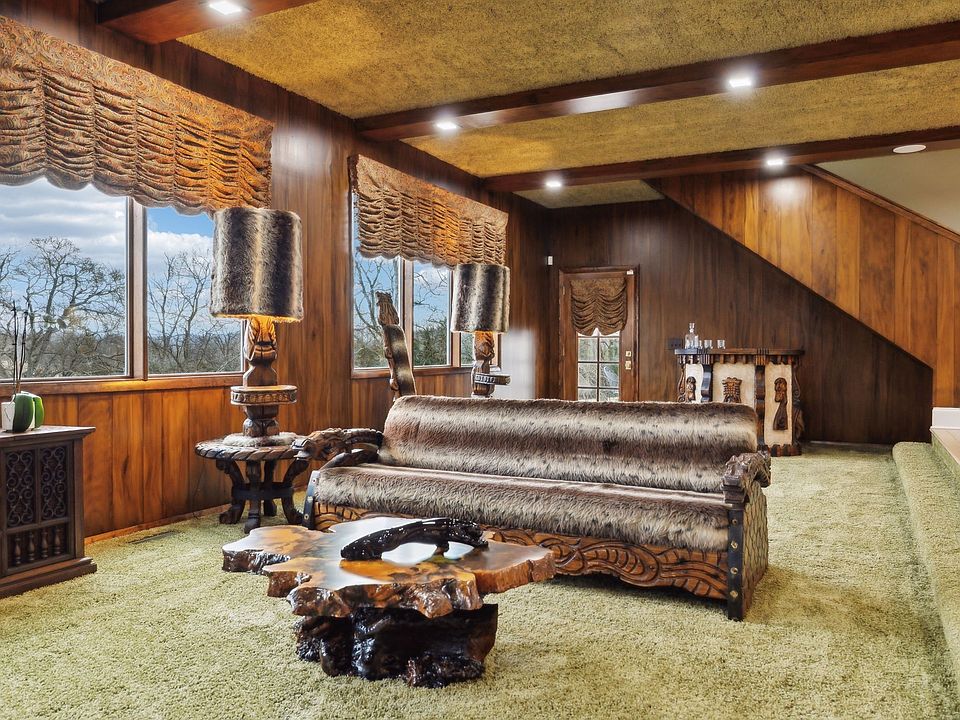 Themed denDetached three-car garageStately stone exteriorSerene tennessee countrysideSweeping viewsElegant finishesPrivate hill