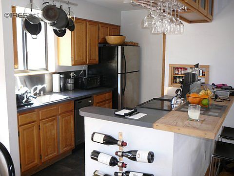 This top floor 2 bedroom/2 bath unit at Canyon Center is like living in a tree house. Hardwood floors, an open floor plan including a study/office with built-ins, fireplace, and the real bonus is a 2 car carport. An abundance of natural light thru-out and a private deck for enjoying those summer evenings with friends. All the conveniences of being right around the corner from downtown yet perfectly located on a quiet street and only 11 blocks to the Laughing Goat.