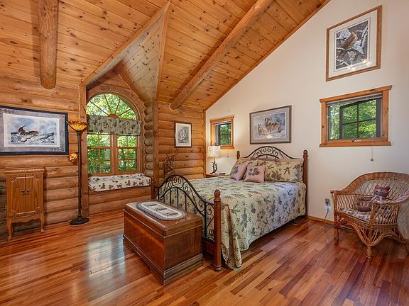 CEDAR GABLES OF CLEAR LAKE. Featured in Country's Best Log Homes Magazine, this stunning Tomahawk Log Home is on 6.7 acres with over 775 feet of south facing frontage next to hundreds of acres of Oneida County Forest Land. Clear Lake is a 30 acre lake that is connected to 190 acre Lake Mildred. The home features 3 bedrooms, 3 baths, 3 car insulated garage, massive stone fireplace, sun room, large deck, lower level rec room with woodstove, and a large workshop with separate exterior entrance. The master bedroom suite has vaulted ceilings, walk in closet, window seat overlooking the lake and a bathroom with a shower and jacuzzi tub. Other amenities include a main floor laundry, Silestone counters, covered porch, whole house generator, sprinkler system, and floating dock with table and chairs. This property consists of 4 tax parcels and encompasses most of the north shore of the lake. Clear Lake is a noncombustible motor lake located between Rhinelander & Minoqua.